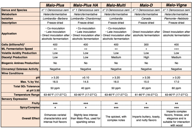 For managing even the most challenging MLF conditions, the Malo-Plus and Malo-Plus HA strains, with their high alcohol and low pH tolerance, stand ready. If you’re aiming for the aromas and mouthfeel of moderate diacetyl levels, the Malo-D is your go-to choice. Seeking more complexity? Our multi-strain contender, Malo-Multi, is ideal. And for heightened complexity and enriched mouthfeel, Malo-Vigna excels even in the most trying circumstances. The Malo range is available in dose sizes ranging from 660 gallons to 100K gallons, to optimize dosage for all wineries.